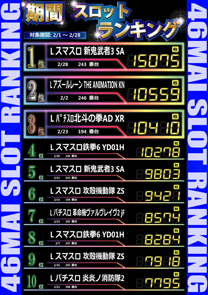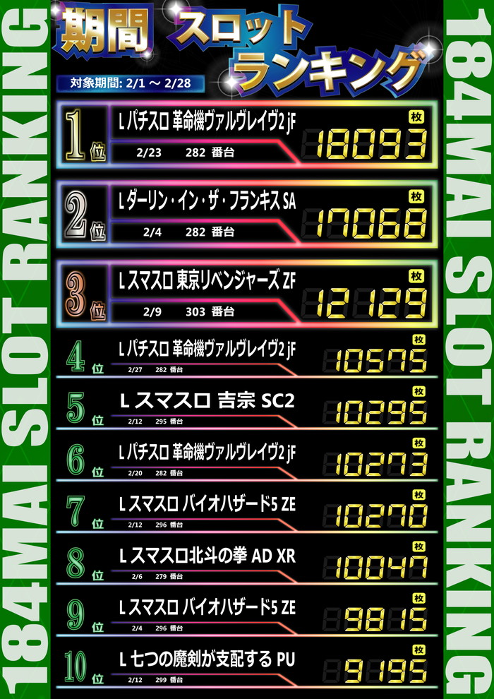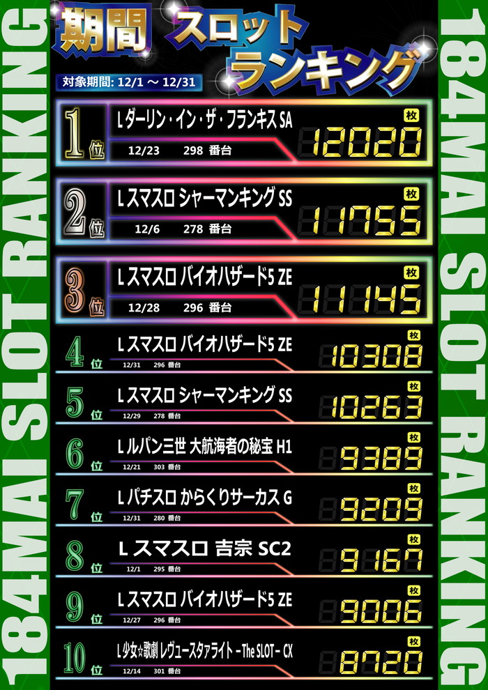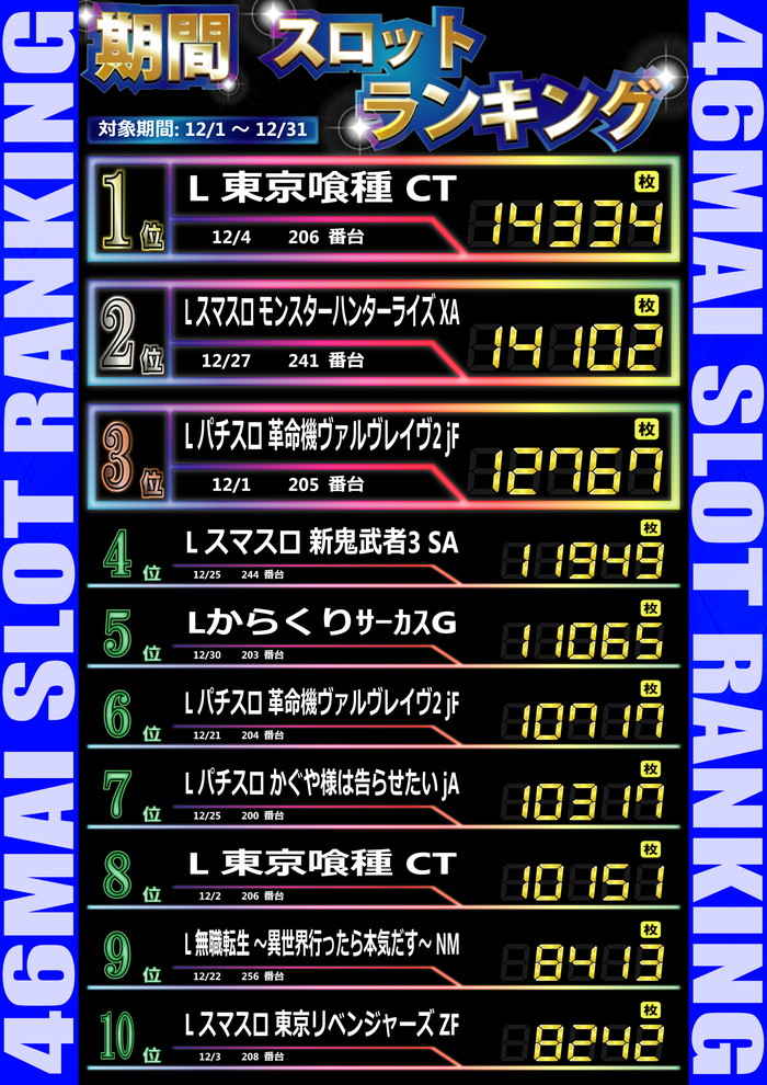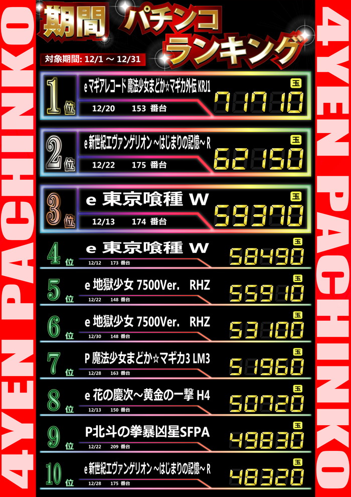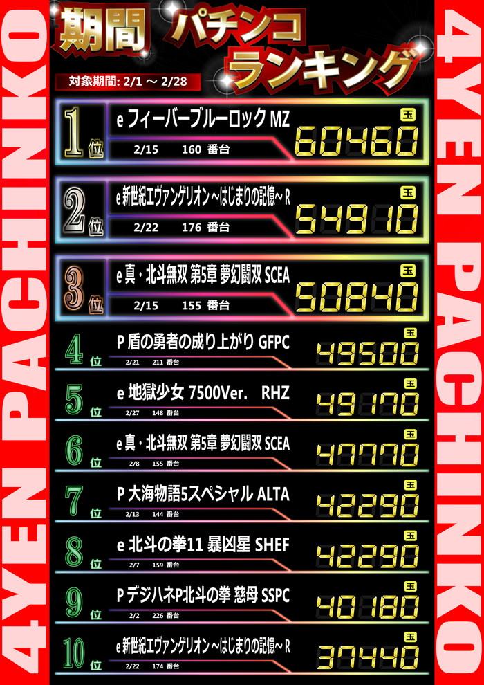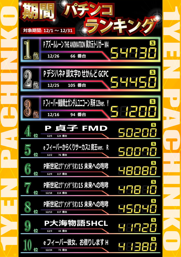 最新出玉ランキング☆